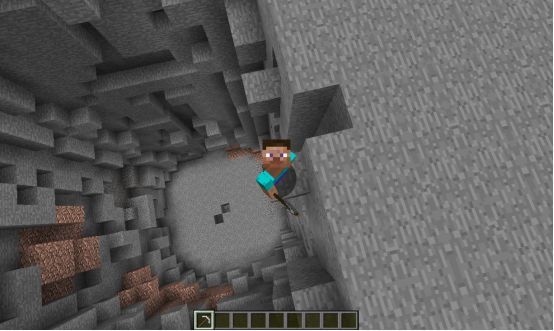 当然也有把垂直挖矿发挥到极限的,就会在地上挖出一个天坑出来,有时候自己一不小心都会掉进坑里摔死。