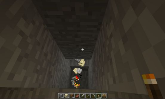 所谓垂直挖矿法就是随便找一个地方然后一直向下挖下去,好处是在四面和脚下五个方向的都有可能碰到矿石,而且队伍由于地方狭窄且随身携带火把,所以不用担心僵尸等怪物。