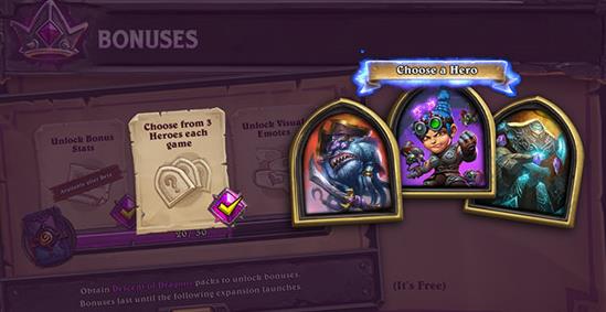 玩家将能在开局之时从给出的两个英雄候选之中挑选其一,而如果是购买巨龙降临卡包超过20包的玩家还会额外增加一个候选项。