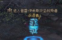 国服特色内容,普雷团队频道里增加了一个完全有用也没用的NPC:诉语者。诉语者位置在NPC尼巫和亚瑟之间。这个添加只是为了方便玩家可以更方便的升级装备,具体功能如下: