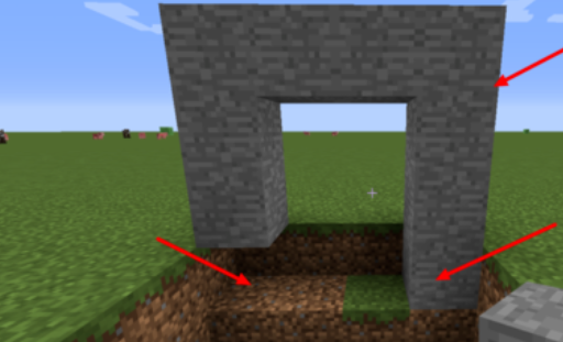 2,接着在坑里的台阶上用石块立起一个门框,然后把在坑里的石块打掉。