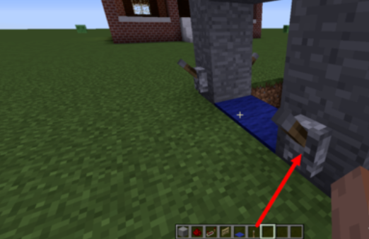 9,用玻璃把这2个空位填上,因为玻璃不会阻断红石,其他的方块就会阻断,如果阻断了红石,那么外边的拉杆就不再有用了。