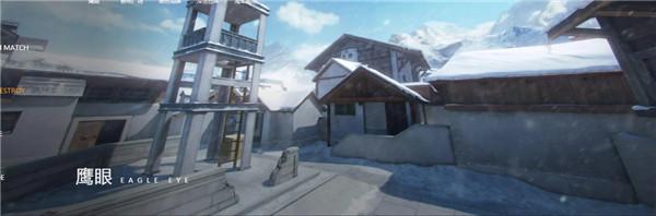 接下来爆破模式下的地图叫做鹰眼,首先鹰眼这张地图,CF游戏中的鹰眼是没有CFHD游戏中的好,原因我们看一下,下面的图片,屋顶上都是厚厚的积雪,模型贴图可以说做的是很尽力,还原真实的场景,而在地图之后的,雪山、蓝天以及云,这些都做的是非常好。这也是CFHD吸引玩家的特大优点之一。