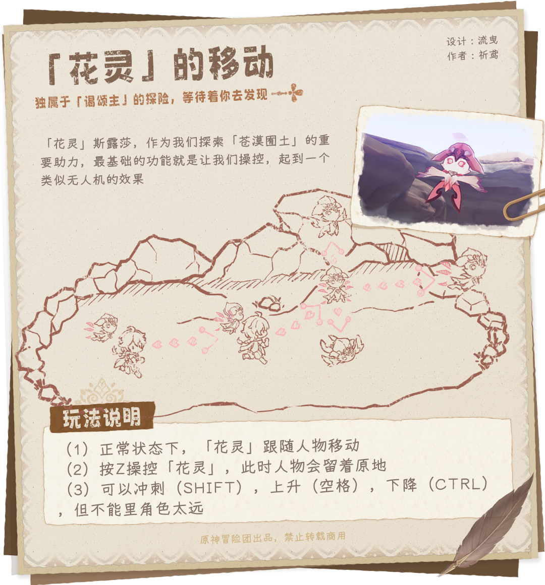 花灵的基础用法,可以当做无人机来勘探地形