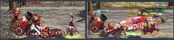 下图左侧为伤害非常高的砸人技能,有读条,读条完远离BOSS,右侧为直线喷火技能,有2秒左右的吸气前摇动作,把控不好时机,有吸气动作时后方输出即可。