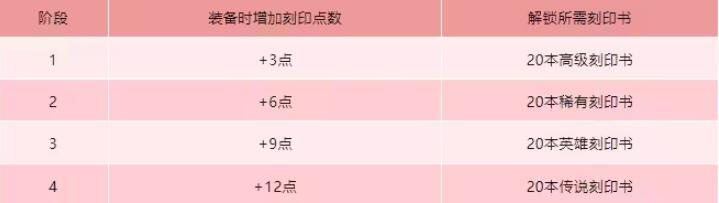 4、刻印的每一个等级都需要用到20本才可以进行下一等级,对应的数为:+3,+6,+9,+12,获得过的刻印等级账号通用。