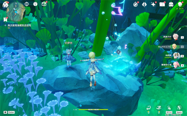5、再次使用回响海螺发送信号:之后我们按照自己选择的音进行吹奏海螺,如果大家想要偷懒,则可以请求艾伊丝帮助;
