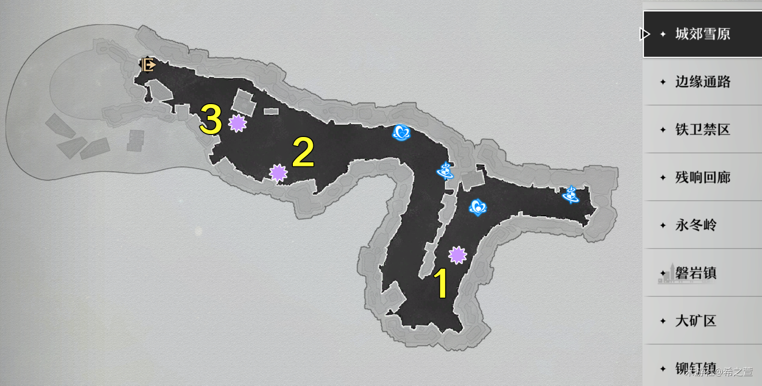 大世界中的材料路线,比较推荐三个地图:【边缘通路】、【铆钉镇】、【城郊雪原】。