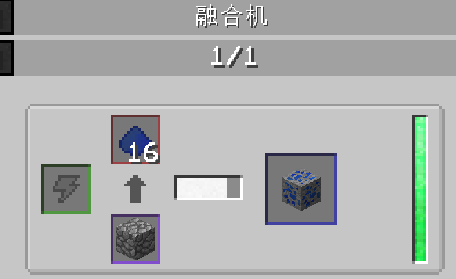 方案二:末影接口的SAG磨粉机在放入有主产物倍率200%加成以上的磨珠时研磨青金石原矿,会产生16个以上的青金石,而16个青金石可以使用通用机械中的融合机制作成一个青金石原矿,循环下去青金石就无限了。