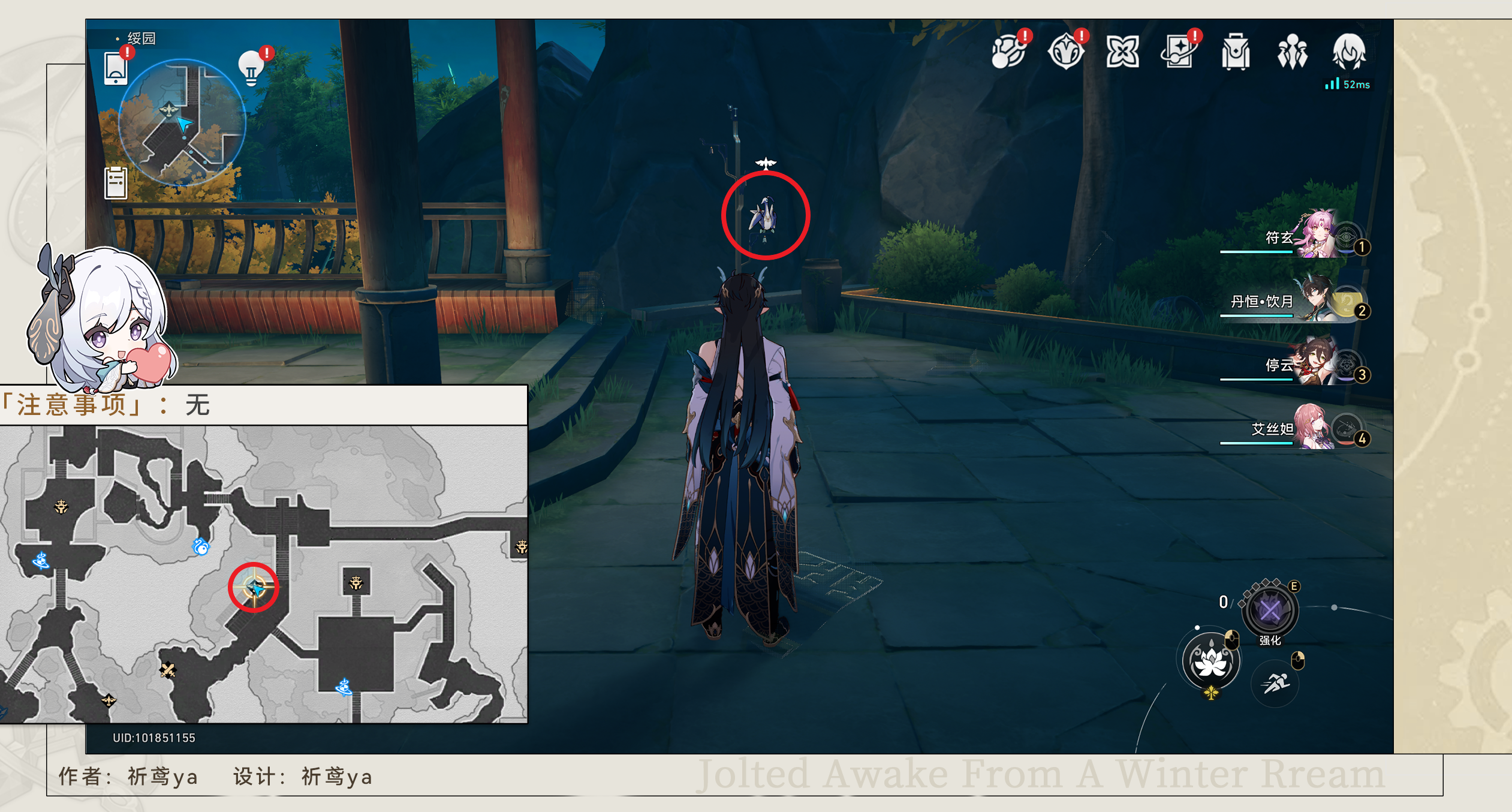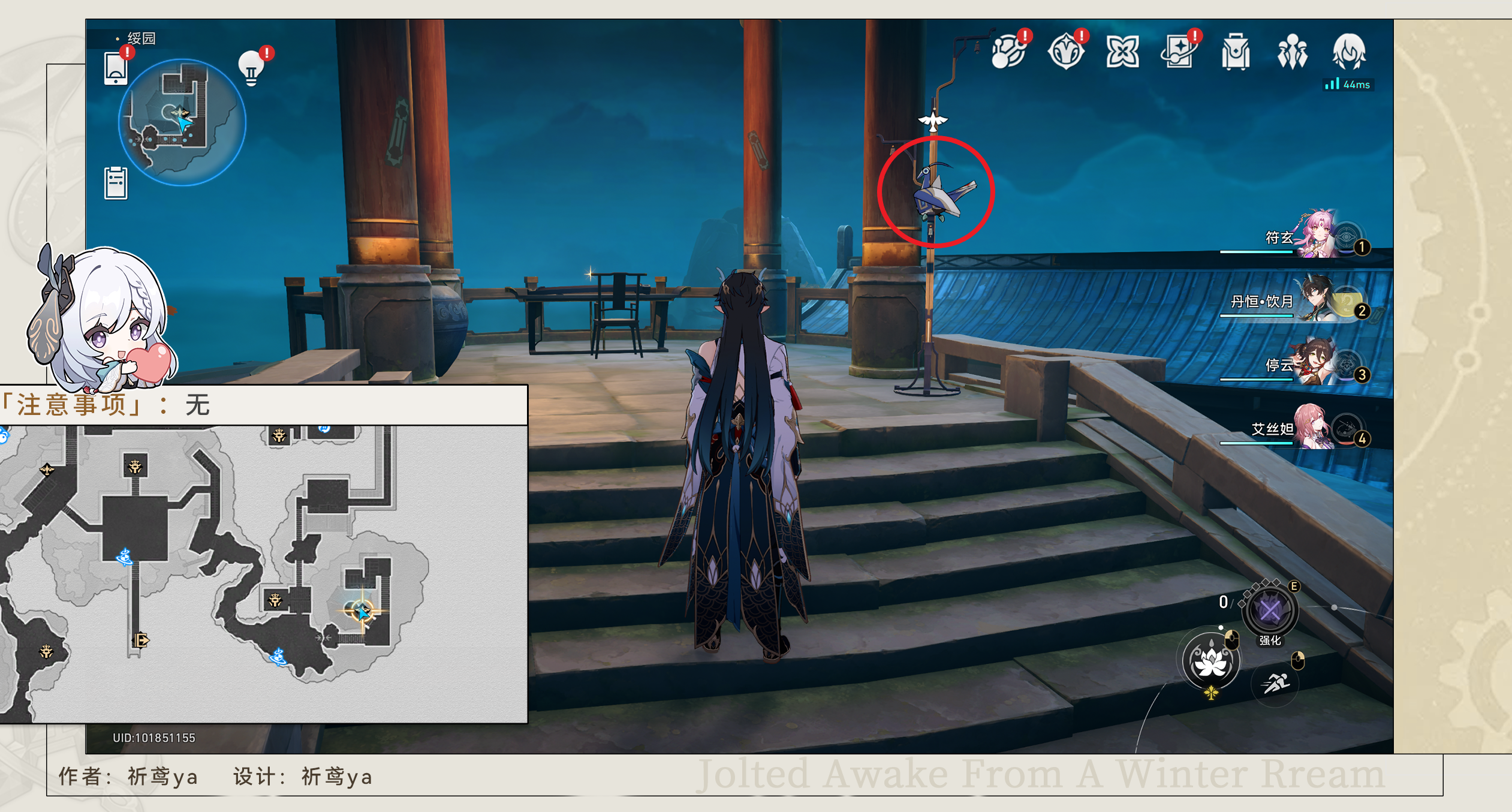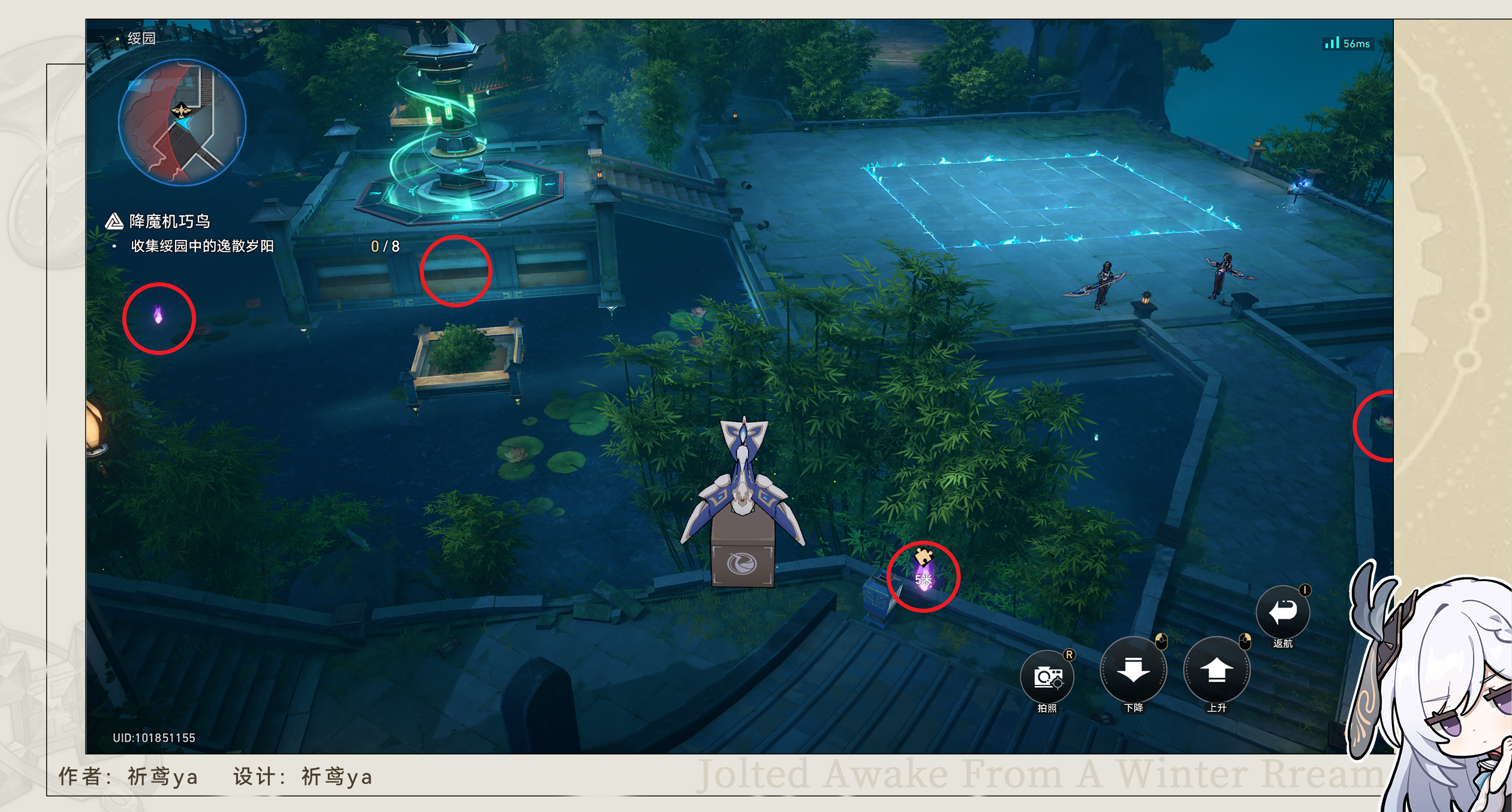 (2)之后顺着楼梯飞下去,假山附近有四个