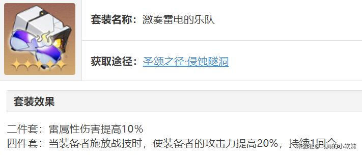【激奏雷电的乐队】四件套,毕竟希露瓦是雷属性的,而且雷属性套装的效果只需要施放战技;