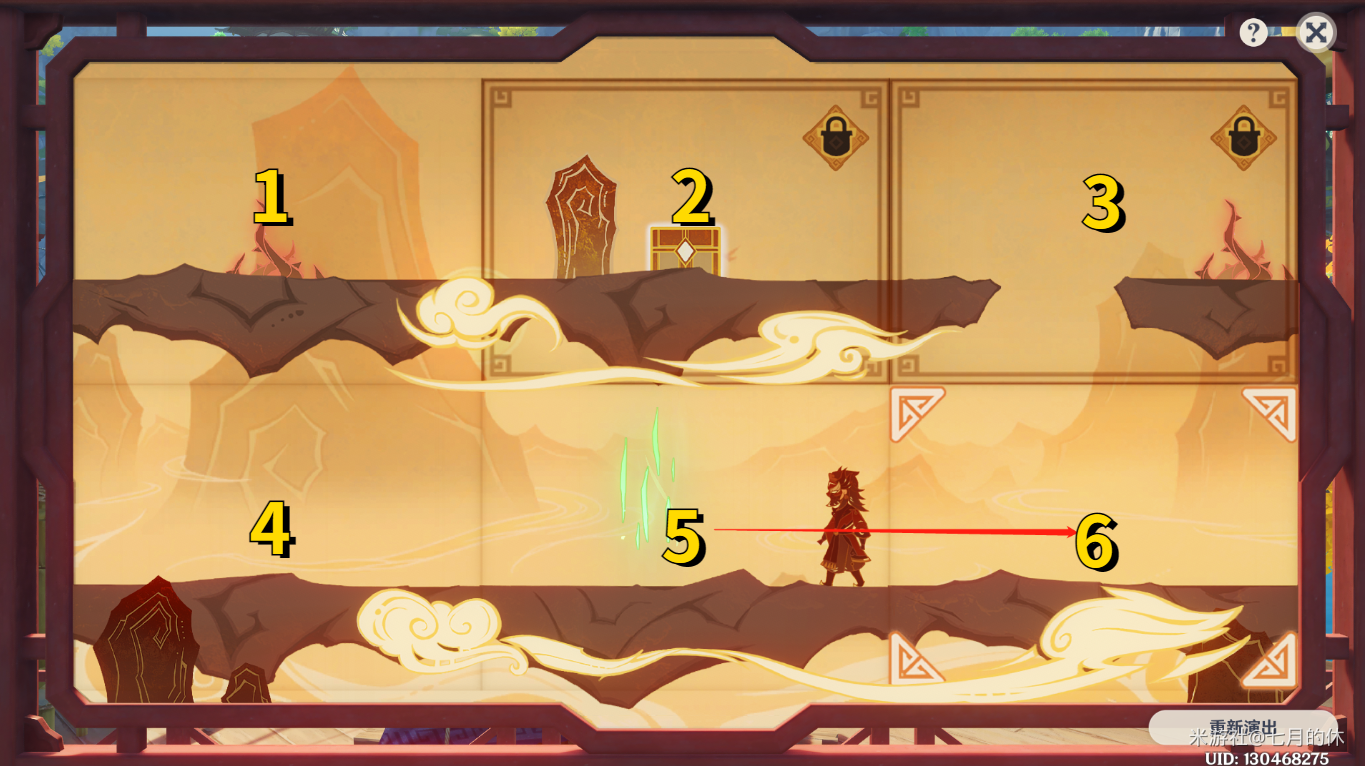 1.当人物走到5号格子时,拖到6号格子,进行位置互换