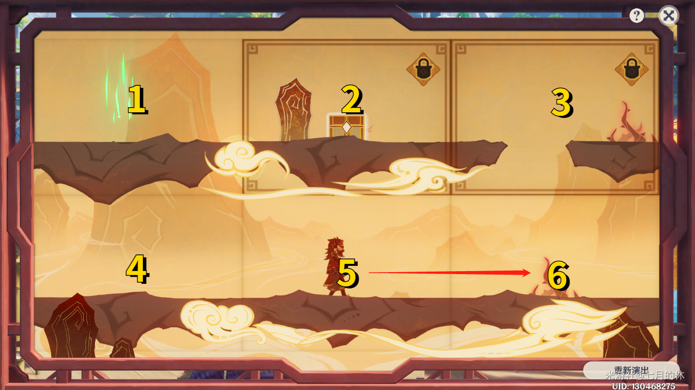 3.等人物走到5号有风场的格子,再与6格子进行互换,就可以借助风场拿到宝箱了。