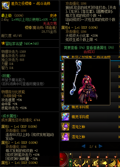 物理攻击力1389,魔法攻击力1158,独立攻击力818,力量114,智力114,成长属性总攻击强化4744。