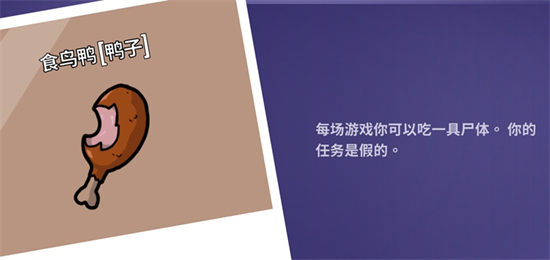 在有尸体的情况下:食鸟鸭技能会变成鸡腿,这时大家可以吃尸体。