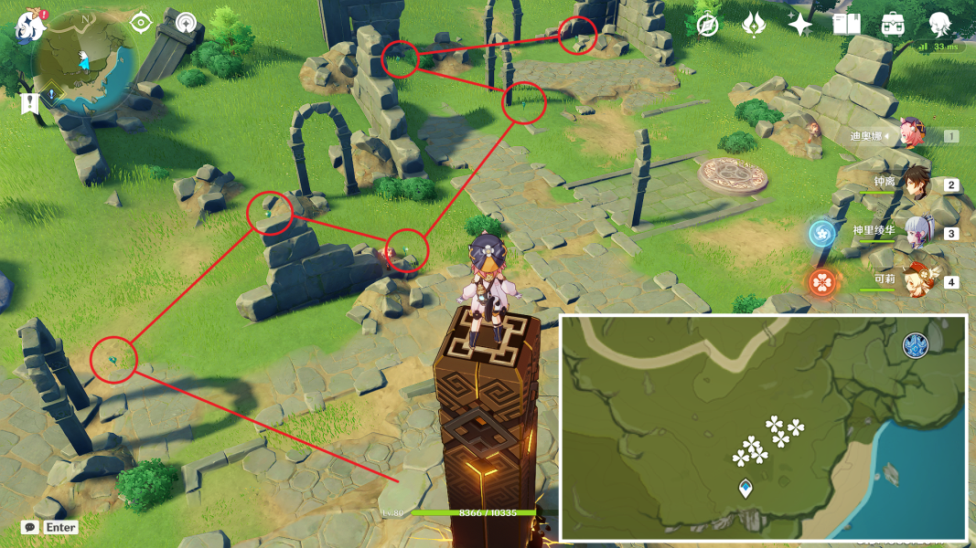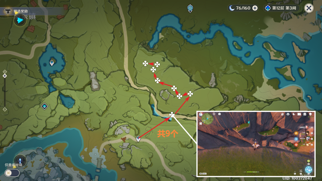 (2)位于蒙德,建议在队伍中加入可莉,天赋可以标记特产位置