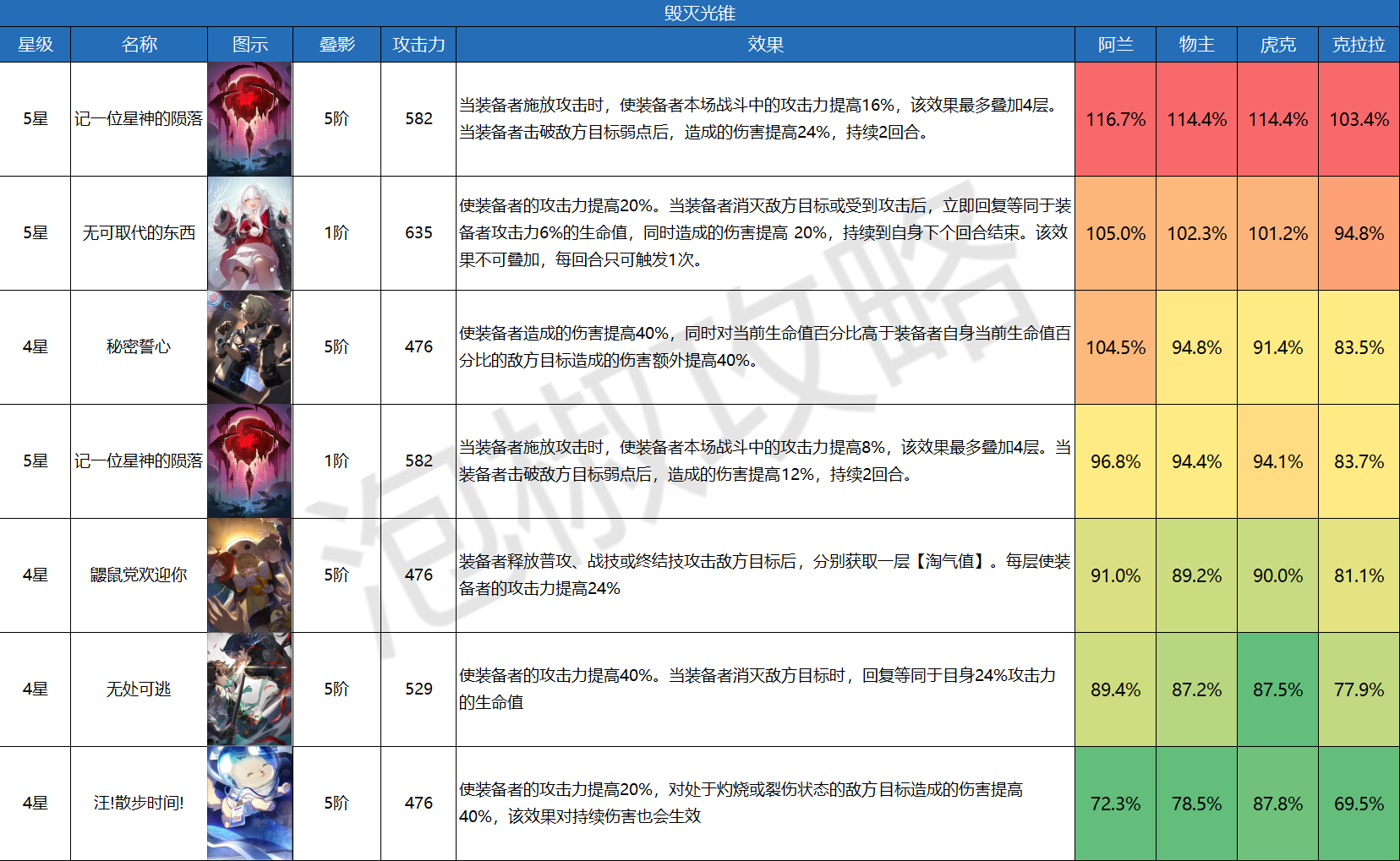 2.毕竟没有限制攻击方式,只要释放就可以叠层,但是满层才加32%攻击不多,击破增伤也不能一直保持,所以只能靠5星面板撑腰才勉强高过4星光锥;