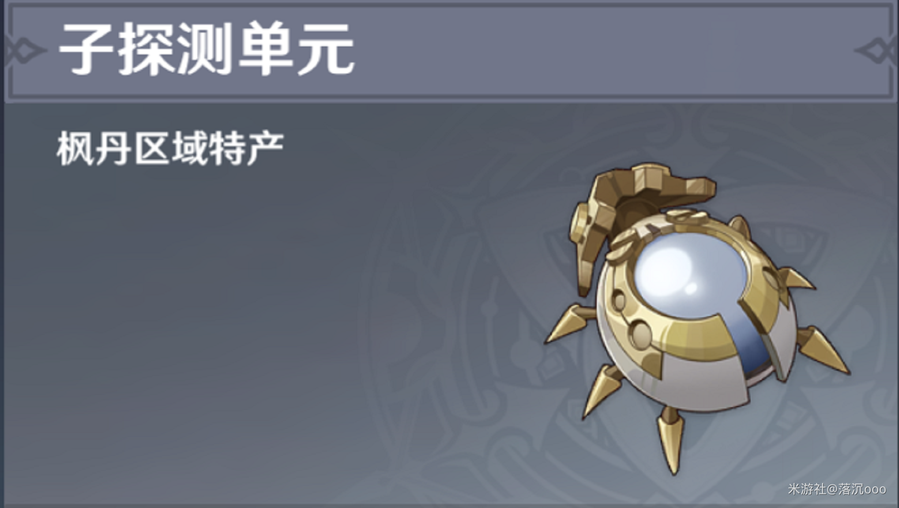 子探测单元是一种稀有的突破材料,需要在枫丹地区的地上获取。