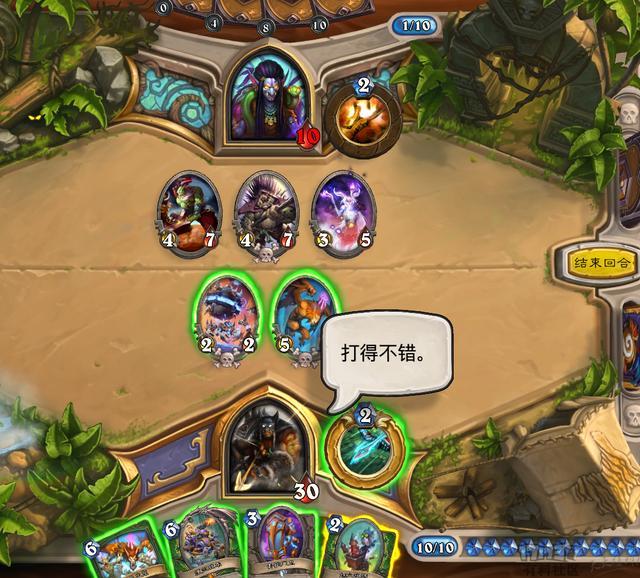 面对德鲁伊55开对局,德鲁伊的铺场没有你想象中的那么强大,毕竟对方都是些杂毛,由于我方机械很多都是大屁股,所以随从交换未必吃亏,总之就是拼命的解场、占场即可,耗光对方手牌你就稳赢。