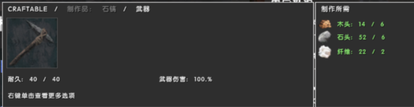 做出石镐以后,就开始用石镐采集,虽然部分资源采集效率较低,但是比拳头强太多啦。
