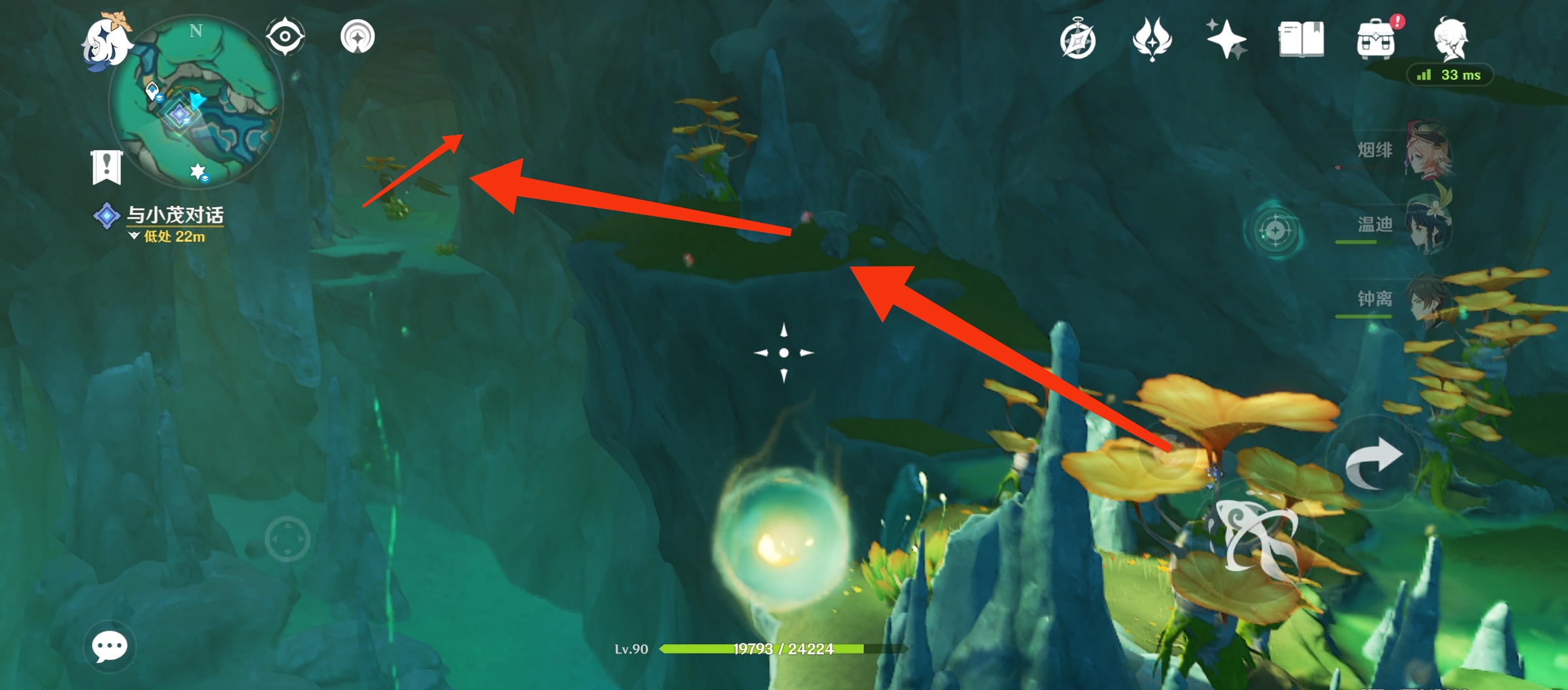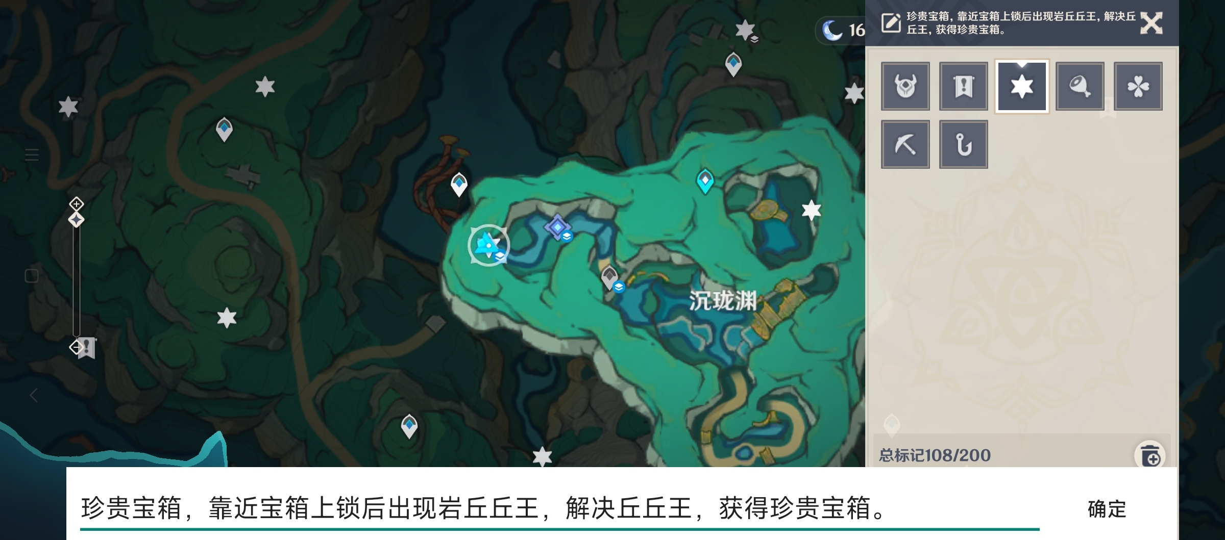 ——顺着任务到达地下,如图一位置,有个珍贵宝箱,靠近上锁,解决出现的丘丘王,解锁宝箱。