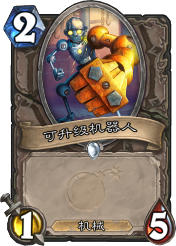 破铜烂铁机器人的血量就更高呢,不过攻击只有0点,这张牌就尽量不要裸下了,不然对手可以免费换掉就很划不来,他的出场必然是要加一些buff的,像上面说的增生手臂和各种磁力都是可以加上的。