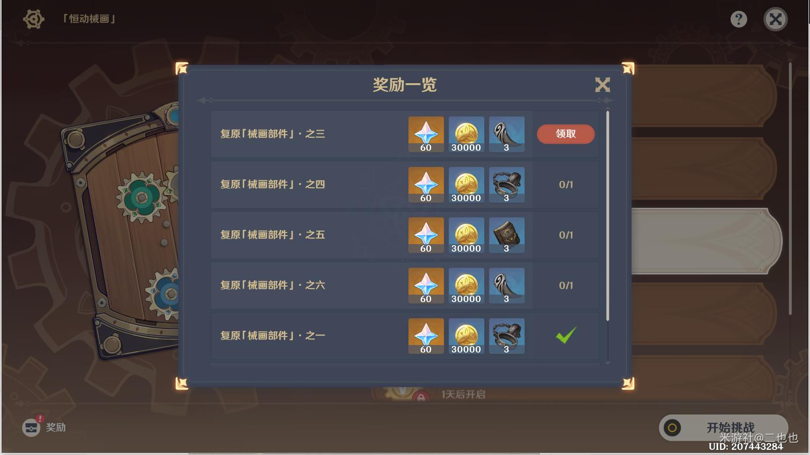 领取复原械画部件·之三奖励