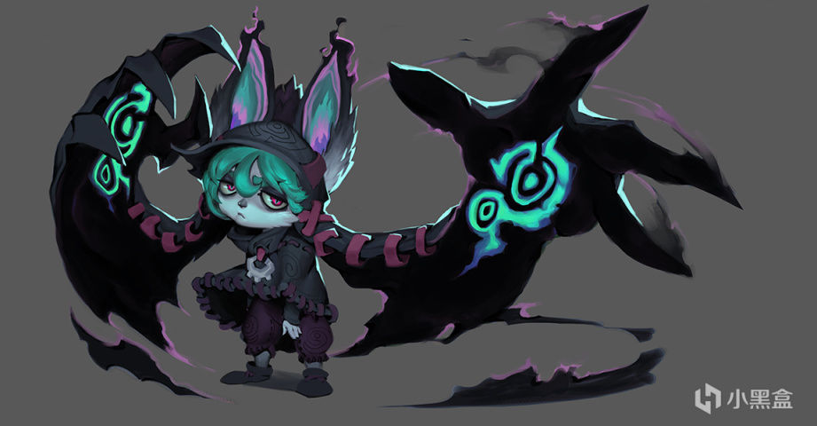 设计团队真正喜欢的并不是黑泥兔子,而是它们所代表的东西。所以薇古丝的技能组就转变成了控场型法师(这一点稍后展开),她的视觉设计方向也就跟着转变了。就是在这个时候,“黑影”诞生了。