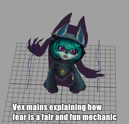 薇古丝和黑影在游戏里的互动可能会使人侧目。她经常用不耐烦和愤怒的语气对它说话,说的当然都是她对自己的看法。但更重要的是,这些互动能够让人透过那张精心维持的冷漠面具,发觉面具后面那个心思细腻、表达欲望强烈的约德尔人……还有她欲盖弥彰的爱慕之情。