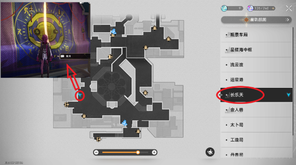 1、首先玩家要来到长乐天的位置,之后在下图红圈处找到npc“若月”;
