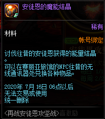 安徒恩的魔能结晶是讨伐往昔的安徒恩获得的能量结晶,主要是用来兑换奖励,可以在赛丽亚旅馆的NPC往昔的无线通讯器处兑换各种物品。