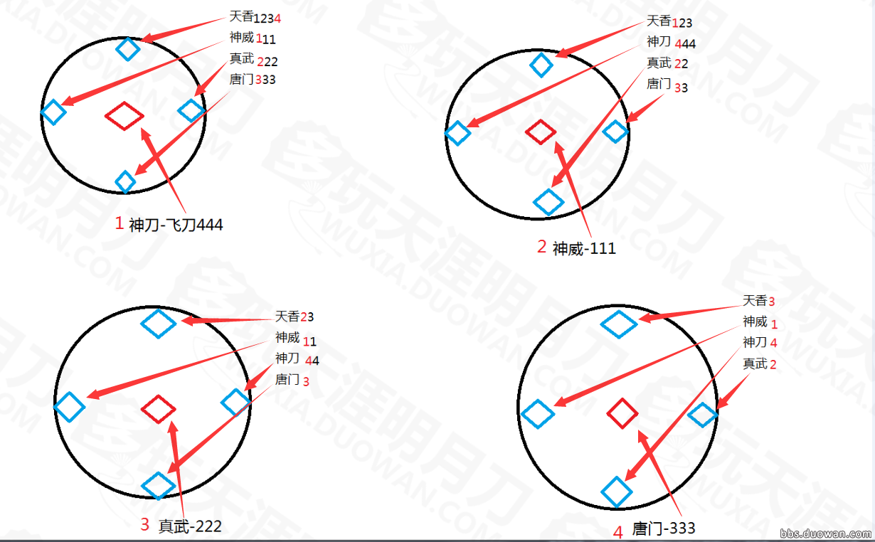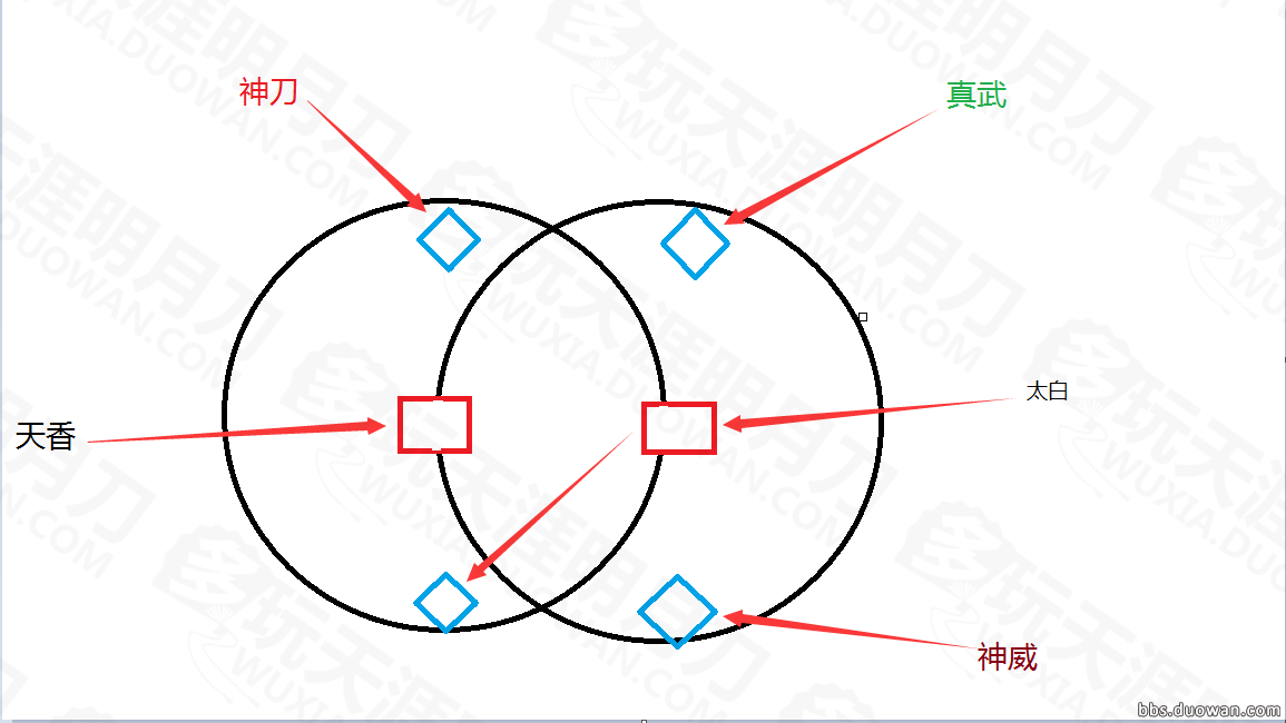 神威3个穴,真武3个穴,太白3个穴,神刀三个穴,天香拉飞刀,拿4个不同穴位