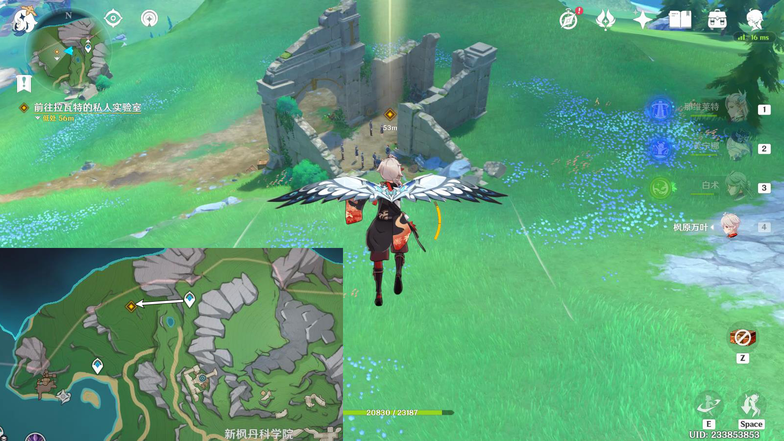 传送新枫丹科学院西北方向锚点,往地图的西方向飞