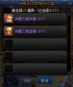 开启后,可以从2种仲夏派对宠物中,选择获得1个。