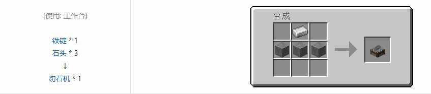 切石机用于制造与石头有关的方块并可作为工作台的廉价替代品,因为切石机的所有合成配方都只需要一个原料。