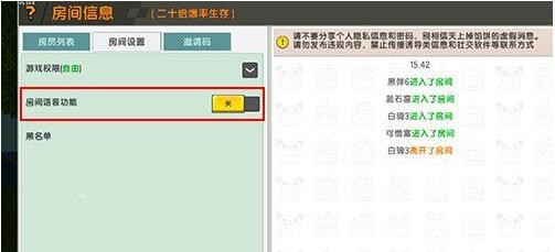 3、进入新界面,下面有个房间语音功能,点击右边的按钮,选择打开。