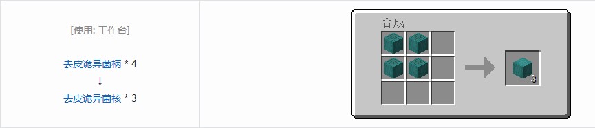 我的世界游戏里面的去皮诡异菌核作用介绍:可用于装饰,但不能当做燃料,可使用斧类工具右击诡异菌核获得,也可使用4个诡异菌核合成获得,每次合成时获得3个。