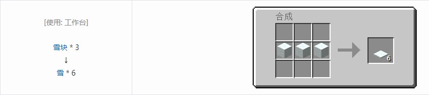 将数个雪块叠起来后将下方雪块挖掉,上方雪块不会掉落,而雪恰恰相反。