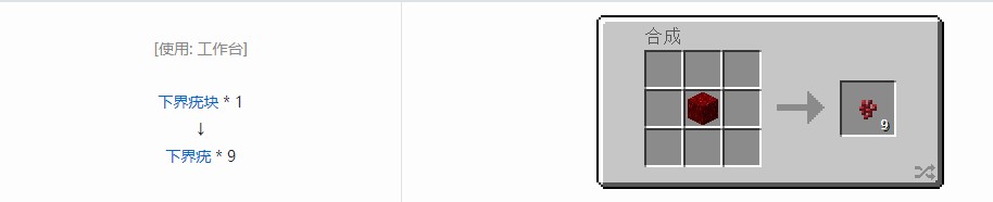 获得方式:在下界要塞的战利品箱中有 19.04% 的概率生成 3-7 个下界疣。
