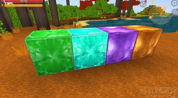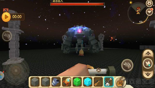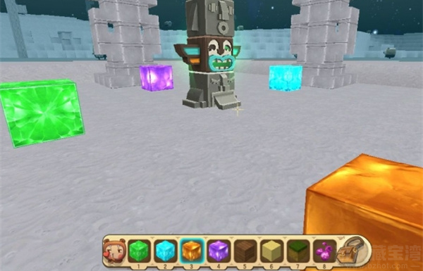 1、召唤石巨人先需要准备好紫莹石块、星铜石块、孔雀石块、蓝钻块。