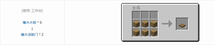活板门是一种透明的固体方块,可以被用作能够打开的栅栏。使用不同的木板可以获得对应种类的活板门。