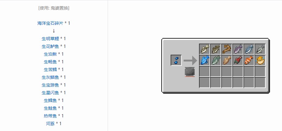 酿造:河豚可以与粗制的药水一起酿造出水肺药水,能使玩家在水下不减少氧气值。一个河豚足够制作出让玩家在水下逗留最多24分钟的药水数量。河豚是唯一能够制作水肺药水的酿造材料。
