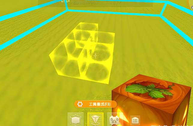 1.首先需要创建开发者模式地图,然后进入地表世界后选择工具模式,然后拿出区域工具安放在地面上。