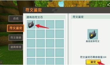 3.准备【符文鉴定石】,放入放入符文石,点击【鉴定】。
