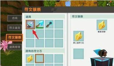 1.进入迷你世界,制作【铸铁工匠台】,放置地面上;2.打开工匠台界面,点击【符文鉴定】;3.准备【符文鉴定石】,放入符文石,点击【鉴定】。4.收集符文,左侧标签点击【符文镶嵌】;5.将工具放入,在符文镶嵌凹槽放入目标符文;6.这样工具符文镶嵌就完成了。