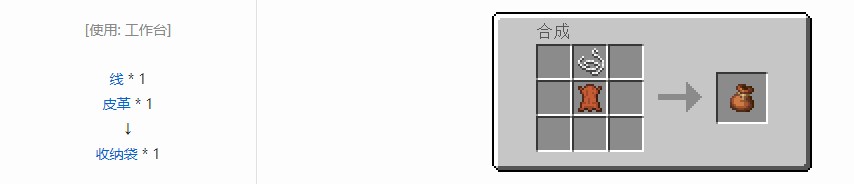我的世界游戏里面的收纳袋作用介绍:收纳袋可以在物品栏中收集储存杂物,最多可以储存等同于1组的物品,相当于内部有64个槽位,每个单组堆叠上限为64的物品占用1个槽位,每个上限为16的物品占用4个槽位。
