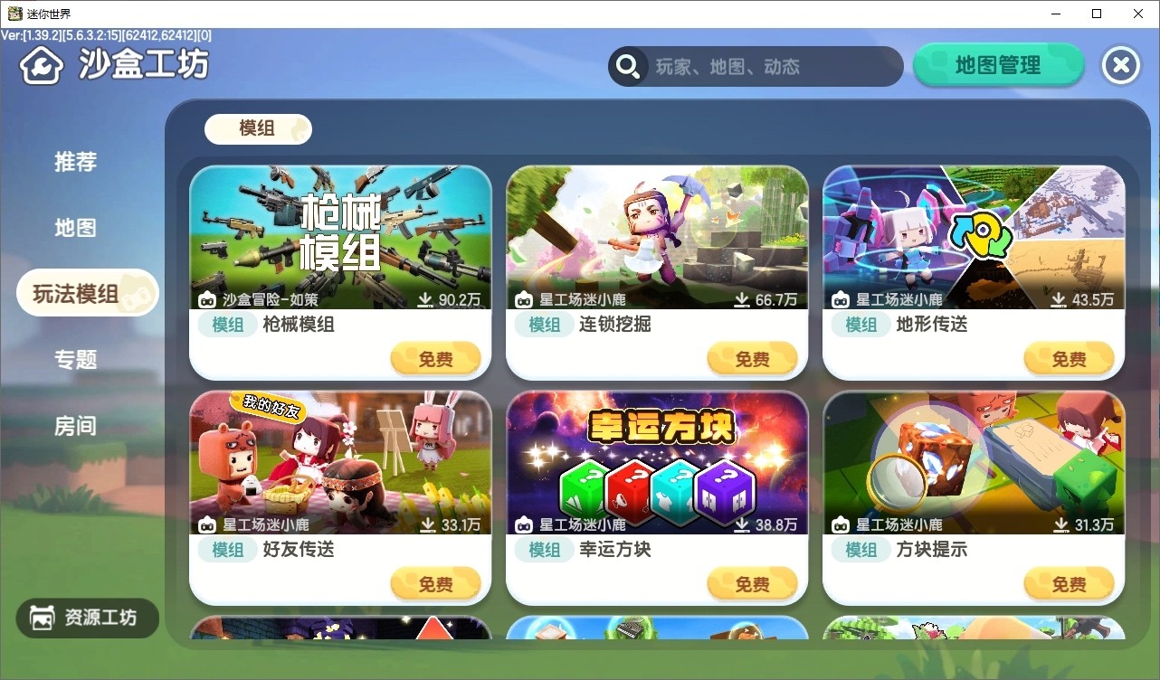 首先 进入主界面 打开“沙盒工坊”进入第三行“资源”一栏