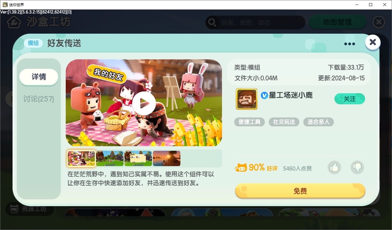 首先 进入主界面 打开“沙盒工坊”进入第三行“资源”一栏;此时可以浏览模组 了解模组内容 游玩教程以及玩家评价 然后点击下载你想要的模组;点击“导入”将模组安装在地图中即可。