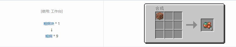 用途:可用于在熔炉中烧制成铜锭,也可用于合成粗铜块。