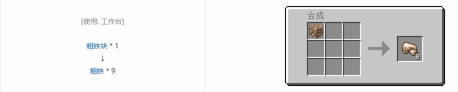 用途:可用于在熔炉中烧制成铁锭,也可用于合成粗铁块。